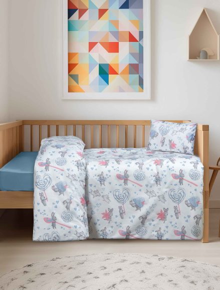 Διάσταση: Σετ σεντόνια κούνιας με λάστιχο: 120 x 170 + 70×140 + 15 + 1 μαξιλαροθήκη 30 x 40 εκ., Σετ σεντόνια κούνιας: 120 x 170 + 1 μαξιλαροθήκη 30 x 40 εκ., Σετ σεντόνια λύκνου: 70 x 120 εκ.
