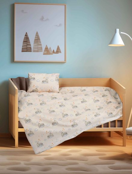 Διάσταση: Σετ σεντόνια κούνιας με λάστιχο: 120 x 170 + 70×140 + 15 + 1 μαξιλαροθήκη 30 x 40 εκ., Σετ σεντόνια κούνιας: 120 x 170 + 1 μαξιλαροθήκη 30 x 40 εκ., Σετ σεντόνια λύκνου: 70 x 120 εκ.