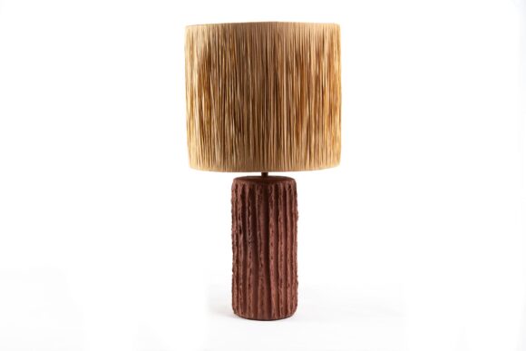Επιτραπέζιο Φωτιστικό Brava Raffia Terracotta (36x36x60cm) από paper mache και νήμα raffia. Συμπεριλαμβάνει τον ηλεκτρολογικό εξοπλισμό (ντουί, καλώδιο). Προτείνεται για εσωτερικό χώρο. Συσκευασία 1 δέμα ανά τεμάχιο.