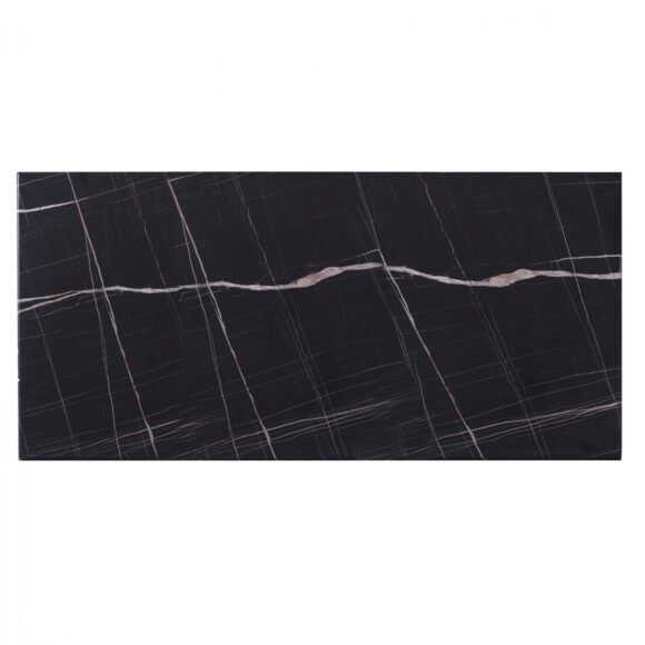 Επιφάνεια τραπεζιού werzalit 120X80 σε χρώμα μαύρο μάρμαρο με λευκές και μπεζ λεπτομέρειες.