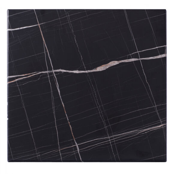 Επιφάνεια τραπεζιού werzalit 70X70 σε χρώμα μαύρο μάρμαρο με λευκές και μπεζ λεπτομέρειες.