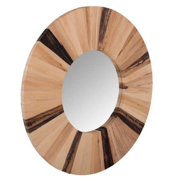O καθρέπτης ΗΜ7839 από την νέα γκάμα των προϊόντων μας, είναι πραγματικά ένα εντυπωσιακό κομμάτι στην διακόσμηση του χώρου σας! Το design του είναι μοναδικό με το αριστοτεχνικά κατασκευασμένο στρογγυλό πλαίσιο από αποξηραμένες ίνες φύλλων φοίνικα τα οποία δίνουν πλέον μια ξυλώδη αίσθηση. Οι ίνες (τα φύλλα) είναι στο φυσικό τους χρώμα και οι διαστάσεις του καθρέπτη είναι πραγματικά μεγάλες.