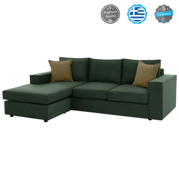 Ξεκινώντας από τα βασικά και τα προφανή, το χρώμα της επένδυσης με την βελούδινη υφή αυτού του καναπέ, είναι MAKALU 07 ΠΡΑΣΙΝΟ. Διαθέτει 3 μαξιλάρια πλάτης και 3 μαξιλάρια καθίσματος που θα δώσουν την τέλεια αίσθηση άνεσης! Η ευχάριστη αισθητική πινελιά με το ρέλι στο ίδιο χρώμα που διατρέχει τις γωνίες στα μπράτσα αλλά και τα μαξιλάρια πλάτης και τα διακοσμητικά μαξιλάρια ολοκληρώνει την αισθητική υπεροχή του καναπέ με τον καλύτερο τρόπο. Μάλιστα, τα δύο διακοσμητικά μαξιλαράκια είναι σε ΧΡΥΣΟ χρώμα δημιουργώντας μια όμορφη διχρωμία.
