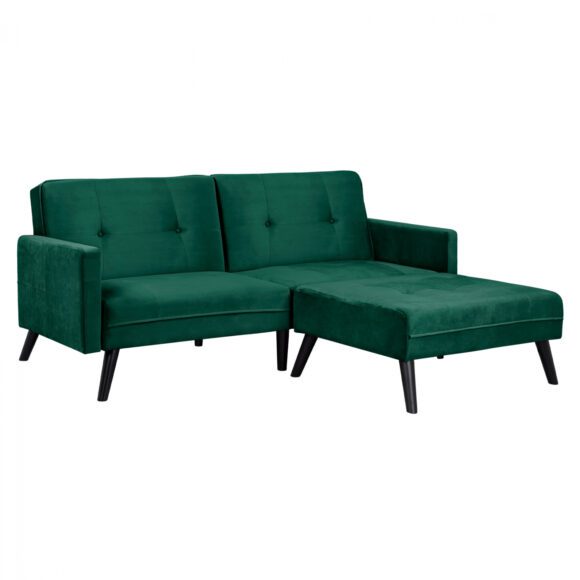 Καναπές γωνία κρεβάτι, με υποπόδιο, επενδεδυμένος με βελούδινο ύφασμα σε κυπαρισσί απόχρωση 211X158X83Y εκ.
