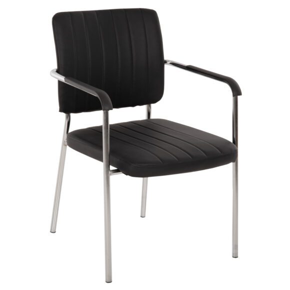 Καρέκλα επισκέπτου με μπράτσα, από μαύρο PU και σκελετό από χρωμιομένο ατσάλι για ύψιστη ασφάλεια, σταθερότητα και αντοχή.