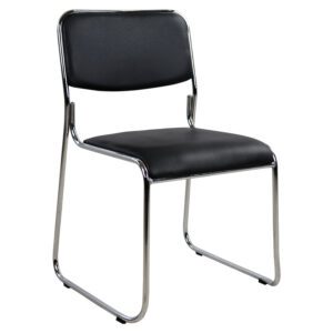 Καρέκλα συνεργασίας με μπράτσα, από υψηλής ποιότητας PU σε μαύρη απόχρωση και χρωμιομένο σκελετό.