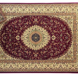 Κλασικό χαλί Teheran της εταιρίας Royal Carpet σε ποικιλία διαστάσεων και χρωμάτων με κόκκινες και κρεμ αποχρώσεις. Κατασκευάζεται από 100% πολυπροπυλένιο (PP) και είναι ιδιαίτερα πυκνό με 400.000 κόμπους ανά τετραγωνικό μέτρο. Είναι ιδανικά για διακόσμηση σπιτιού καθώς δίνουν μια αίσθηση πολυτέλειας και ζεστασιάς στον χώρο.