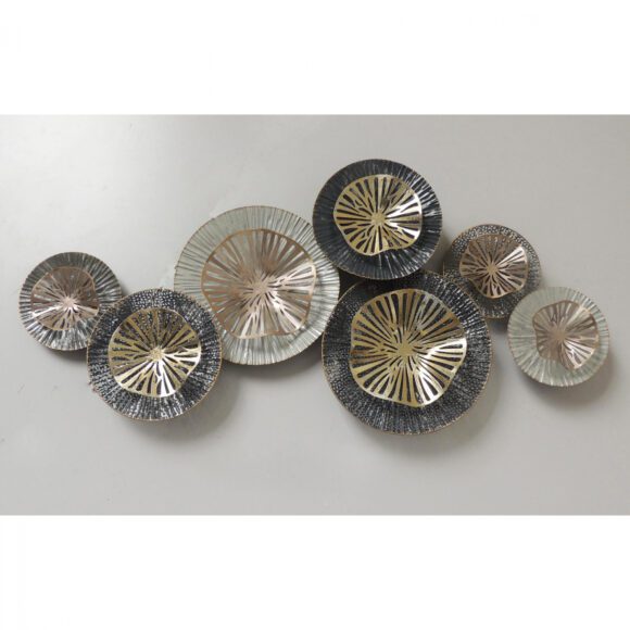 Μεταλλικό διακοσμητικό τοίχου σε ανθρακί και λευκή απόχρωση με χρυσές και μπρονζέ λεπτομέρειες.