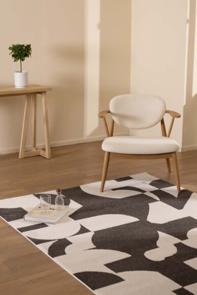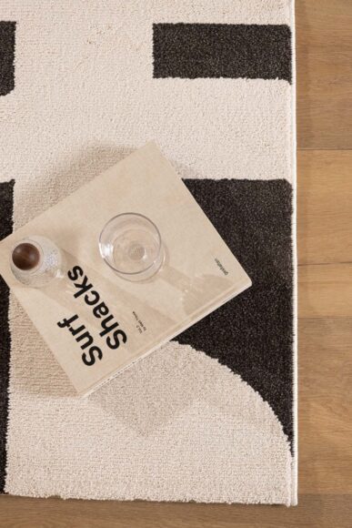 Μοντέρνο χαλί Century που ξεχωρίζει για τη ζωηρή ανθρακί απόχρωση και τα μοντέρνα γεωμετρικά μοτίβα. Με κατασκευή από 100% polyester, διακρίνεται για τη μοναδική shaggy υφή του. Κατάλληλο και για παιδικό ή εφηβικό δωμάτιο.