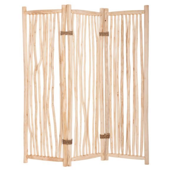 Το παραβάν έχει γίνει από φυσικά μασίφ κλαδιά του δέντρου ΤΕΑΚ. Όταν αναφερόμαστε σε μασίφ, εννοούμε τα ξύλα που κατασκευάζονται ολοκληρωτικά από τον κορμό δέντρου. Το μασίφ είναι η πιο ακριβή επιλογή σε είδος ξύλου αλλά ξεχωρίζει για την διαχρονική αισθητική του.