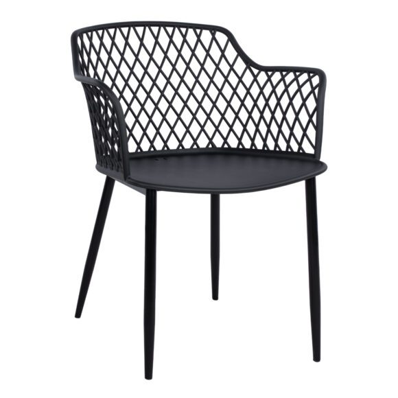 Η κατασκευή της πολυθρόνας JOCELYN είναι από πολυπροπιλένιο και μέταλλο σε μαύρη απόχρωση.