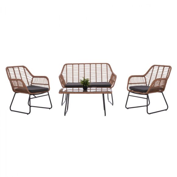 9. ΣΕΤ ΣΑΛΟΝΙ 4ΤΜΧ ΜΕΤΑΛΛΙΚΟ ΜΕ WICKER ΣΚΟΥΡΟ ΓΚΡΙ – ΜΠΕΖ HM5530
