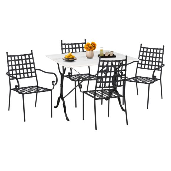 ΗΜ11874—Σετ εξωτερικού χώρου με τραπέζι με ΜΑΥΡΟ μαντεμένιο σκελετό και ΛΕΥΚΗ μαρμάρινη επιφάνεια και 4 ΜΑΥΡΕΣ μεταλλικές πολυθρόνες.