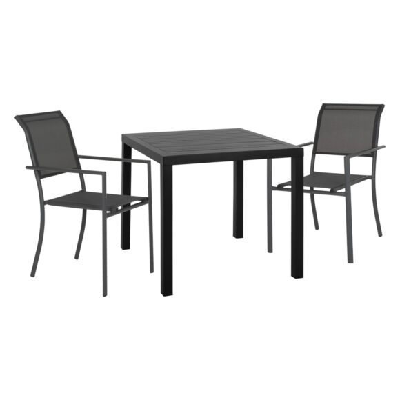 ΗΜ11823—Σετ εξωτερικού χώρου με ΑΝΘΡΑΚΙ αλουμινένιο τραπέζι και 2 ΓΚΡΙ πολυθρόνες αλουμινίου με textilene σε ΓΚΡΙ χρώμα.