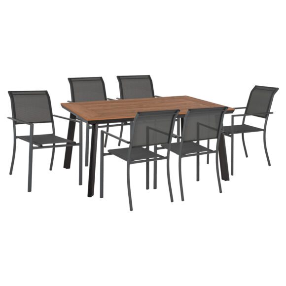 ΗΜ11812—Σετ εξωτερικού χώρου με τραπέζι με ΓΚΡΙ αλουμινένιο σκελετό και επιφάνεια από polywood και 6 πολυθρόνες αλουμινίου με textilene, σε ΓΚΡΙ χρώμα.