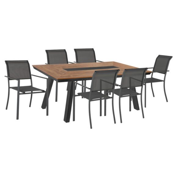 ΗΜ11813—Σετ εξωτερικού χώρου με τραπέζι με ΓΚΡΙ αλουμινένιο σκελετό και επιφάνεια από polywood και 6 πολυθρόνες αλουμινίου με textilene, σε ΓΚΡΙ χρώμα.