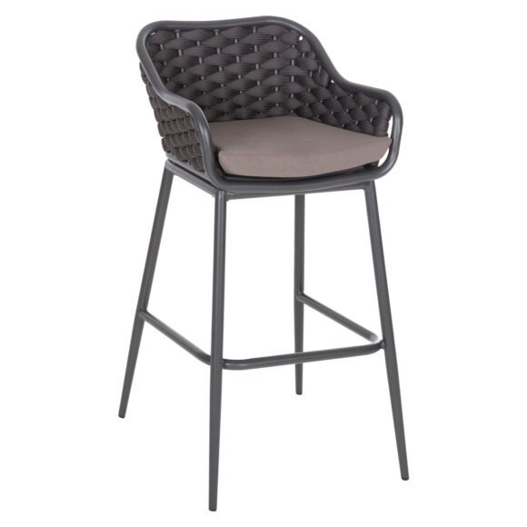 Το σκαμπό HM5862.01, κυρίως για επαγγελματική χρήση, είναι αυτό που ψάχνετε για ένα τέτοιο έπιπλο! Μοντέρνο, άνετο και σταθερό! Η διχρωμία του ΑΝΘΡΑΚΙ σκελετού με την ΚΑΦΕ επένδυση από σχοινί σε όλη την πλάτη είναι μοναδική. Η πλάτη με τα μπράτσα αποτελούν ένα ενιαίο κομμάτι με κάθετες βέργες που είναι πλεγμένες με σχοινί και αγκαλιάζουν το σώμα, ενώ η πλάτη είναι ψηλότερη από τα μπράτσα. Ο σκελετός είναι ψηλός και τα πόδια ενώνονται μεταξύ τους με μια δοκό που λειτουργεί ως υποπόδιο. Το μαξιλάρι του καθίσματος είναι σε ΓΚΡΙ χρώμα και είναι άνετο. Το σκαμπό αυτό θα αναβαθμίσει αισθητικά τον χώρο που θα το τοποθετήσετε και θα τραβήξει τα βλέμματα χάρη στα υλικά κατασκευής του.