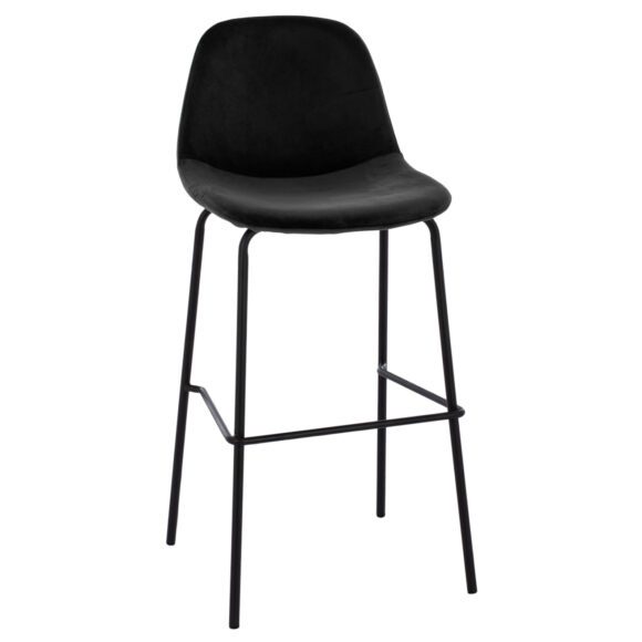 ΗΜ8579.14—Γνωρίστε το VINCENT. Ένα σκαμπό με ΜΑΥΡΟ βελούδινο ύφασμα για μπαρ, που έχει όλα όσα θα θέλατε από ένα τέτοιο έπιπλο. Το VINCENT είναι λιτό, πραγματικά ποιοτικό και κομψό στην όψη, και σίγουρα τραβάει τα βλέμματα. Είναι ψηλό με πλάτη και ο μαύρος μεταλλικός σκελετός καταλήγει σε 4 πόδια τα οποία, όμως, ενώνονται με μια μεταλλική βέργα εμπρός και στα πλαϊνά. Αυτή η βέργα χρησιμεύει ως «σκαλοπάτι» για να ακουμπάτε τα πόδια δίνοντας μεγαλύτερη άνεση στο σκαμπό. Το κάθισμα είναι αναπαυτικό και το σίγουρο είναι ότι αυτό το σκαμπό θα αποτελέσει το κέντρο του ενδιαφέροντος όπου κι αν τοποθετηθεί.