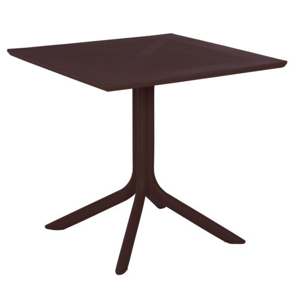 Τραπέζι πολυπροπυλενίου σε ΚΑΦΕ χρώμα. Ιδανική πρόταση για χρήση σε εξωτερικούς χώρους, είτε επαγγελματικούς (χώροι δεξιώσεων, εταιρείες catering, κλπ.) είτε για το σπίτι. Το τραπέζι αποτελείται από μια «τρυπητή» τετράγωνη επιφάνεια, ενώ η στήριξη γίνεται με μια κολώνα στο κέντρο που καταλήγει σε 4 πόδια («νύχια»).