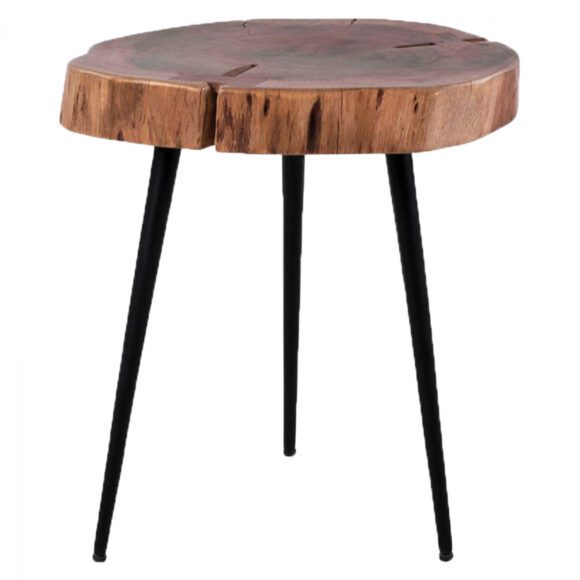 ΗΜ8369.11 Βοηθητικό τραπεζάκι—– Το τρίποδο βοηθητικό τραπεζάκι ΗΜ8369.11 είναι ο ορισμός του ρουστίκ στυλ στο έπιπλο. Το ξύλο είναι στο φυσικό του χρώμα αλλά και στην φυσική του κατάσταση, δηλαδή μια φέτα από τον κορμό του δέντρου. Τα 3 μαύρα μεταλλικά πόδια ολοκληρώνουν αυτή την πολύ απλή και πρακτική υλοποίηση.