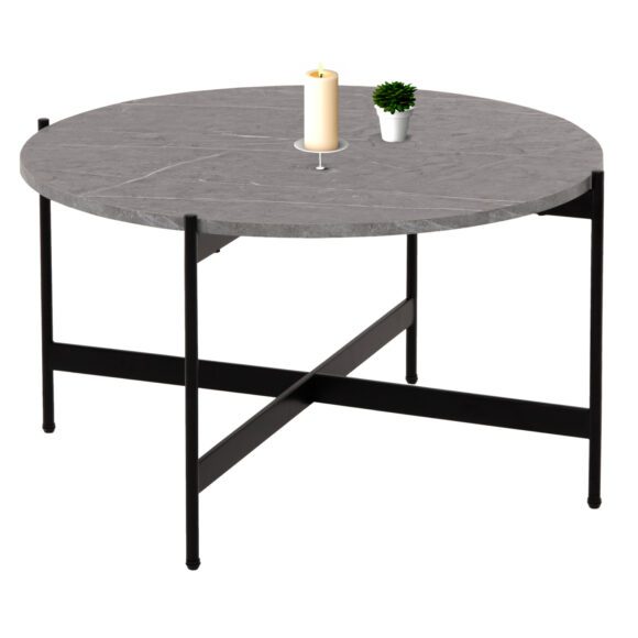 ΤΡΑΠΕΖΙ ΣΑΛΟΝΙΟΥ HM9588.02 MDF ΓΚΡΙ ΜΑΡΜΑΡΟ-ΜΑΥΡΗ ΜΕΤΑΛΛΙΚΗ ΒΑΣΗ Φ80×45Υεκ.