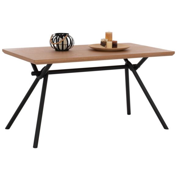Το ΗΜ9302.01 είναι ένα μεγάλο ορθογώνιο τραπέζι για την τραπεζαρία, με επιφάνεια από MDF με καπλαμά από ξύλο δρυός σε χρώμα ΗΟΝΕΥ ΟΑΚ και στυλ ρουστίκ. Η επιφάνεια αυτή είναι «φαλτσοκομμένη»(δεν είναι δηλαδή τετραγωνισμένη στις ακμές της) και στηρίζεται σε έναν μαύρο μεταλλικό σκελετόπλαίσιο με πόδια σε σχήμα πλαγιαστού Λ. Πρόκειται για ένα όμορφο τραπέζι σε μεγάλη διάσταση και με όμορφη διχρωμία, με αποτέλεσμα να μπορεί να ταιριάξει αισθητικά σχεδόν σε κάθε ανάλογο χώρο.