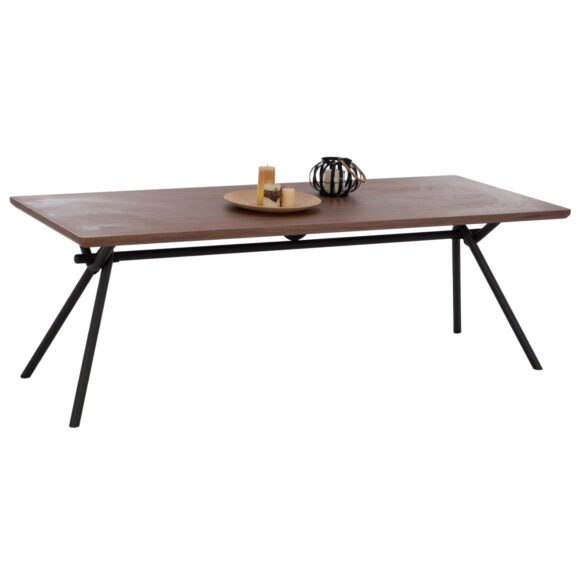 Το ΗΜ9303.02 είναι ένα μεγάλο ορθογώνιο τραπέζι για την τραπεζαρία, με επιφάνεια από MDF με καπλαμά από ξύλο καρυδιάς σε χρώμα σκούρο ΚΑΡΥΔΙ και στυλ ρουστίκ. Η επιφάνεια αυτή είναι «φαλτσοκομμένη»(δεν είναι δηλαδή τετραγωνισμένη) και στηρίζεται σε έναν μαύρο μεταλλικό σκελετόπλαίσιο με πόδια σε σχήμα πλαγιαστού Λ. Πρόκειται για ένα επιβλητικό τραπέζι σε μεγάλη διάσταση και με όμορφη διχρωμία, με αποτέλεσμα να μπορεί να ταιριάξει αισθητικά σχεδόν σε κάθε ανάλογο χώρο.
