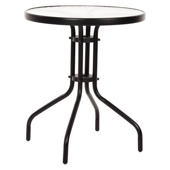 ΗΜ5079.03 ΤΡΑΠΕΖΙ ΣΤΡΟΓΓΥΛΟ γυάλινο—–Το LIMA είναι ένα στρογγυλό τραπέζι με επιφάνεια από ημιδιάφανο γυαλί ασφαλείας και μεταλλικά πόδια σε μαύρο χρώμα. Η γυάλινη επιφάνεια στηρίζεται σε έναν κυκλικό μεταλλικό «δακτύλιο» ο οποίος με την σειρά του στηρίζεται στην διάταξη των ποδιών. Ένα όμορφο και στιβαρό τραπέζι που θα ομορφύνει τον εξωτερικό σας χώρο.