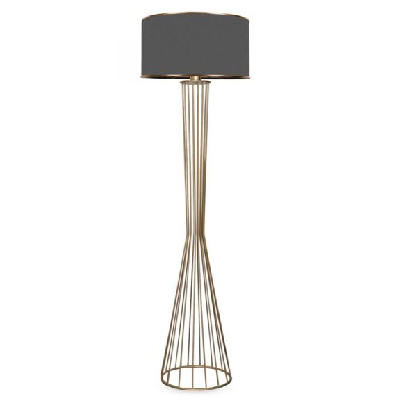 Το κυλινδρικό «καπέλο» του φωτιστικού είναι σε σκούρο γκρι χρώμα με χρυσούς δακτυλίους στις άκρες που του δίνουν μια αίσθηση πολυτέλειας.