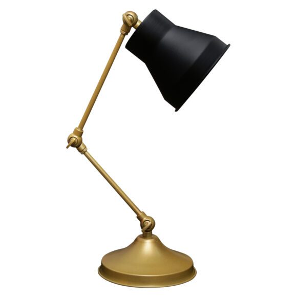 Μια ανανεωμένη εμφάνιση σε ένα διαχρονικό και παραδοσιακό κομμάτι που στυλιστικά δεν θα γεράσει ποτέ. Αυτό το ρυθμιζόμενο σε τρία σημεία κομψό φωτιστικό γραφείου διαθέτει κυκλική βάση ελαφρώς υπερυψωμένη στο κέντρο της και βραχίονες, από μέταλλο σε χρώμα παλαιωμένου χρυσού. Το «καπελάκι» είναι επίσης μεταλλικό και μαύρο. Το τελικό αποτέλεσμα αν και κλασικό, σου αφήνει μια μοντέρνα αίσθηση.
