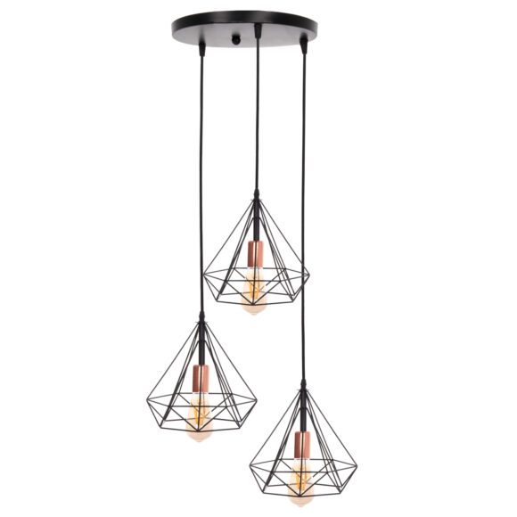 Αφήστε το φως να απλωθεί στον χώρο με ένα πρωτότυπο και φινετσάτο κρεμαστό 3φωτο οροφής, ολοκληρώνοντας την διακόσμησή σας. Το σχήμα διαμαντιού με ΜΑΥΡΕΣ μεταλλικές ράβδους στα 3 φωτιστικά που είναι τοποθετημένα σε διαφορετικά ύψη, είναι η επιτομή του μοντέρνου design.