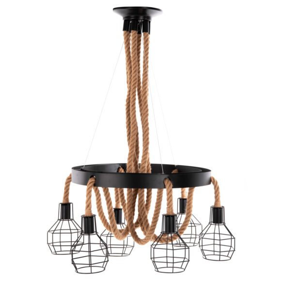 Ανακαλύψτε το νέο μας 6-φωτο κρεμαστό φωτιστικό οροφής, και μην διστάσετε να το εντάξετε στην διακόσμησή σας. Ο συνδυασμός σχοινιού και μετάλλου είναι ξεχωριστός, ενώ οι 6 λαμπτήρες σε μεταλλικούς κλωβούς θα «ρίξουν» φως σε κάθε γωνιά του δωματίου. Ιδανικό τόσο για το σπίτι, όσο και για επαγγελματικούς χώρους.