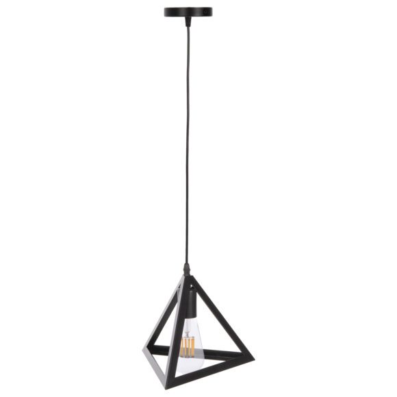 Ανακαλύψτε αυτό το νέο μας κρεμαστό φωτιστικό οροφής και ολοκληρώστε την διακόσμησή σας. Πρόκειται για ένα φωτιστικό με ΜΑΥΡΟ μεταλλικό καπέλο σε σχήμα πυραμίδας, και αποτελεί την τελευταία τάση στα φωτιστικά οροφής.