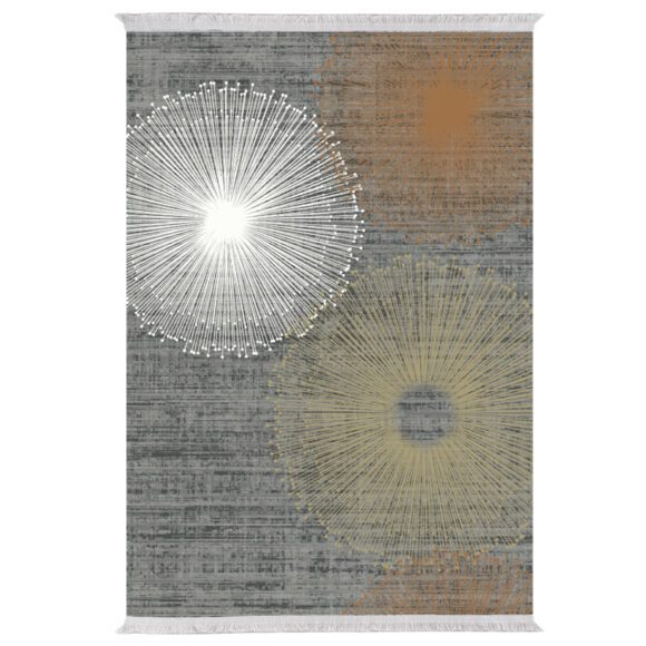 ΗΜ7677.44- χαλί σαλονιού—— Σας παρουσιάζουμε την νέα προσθήκη στην γκάμα των προϊόντων μας. Αυτό το χαλί απεικονίζει πολύχρωμα κυκλικά σχέδια σε ΓΚΡΙ φόντο.