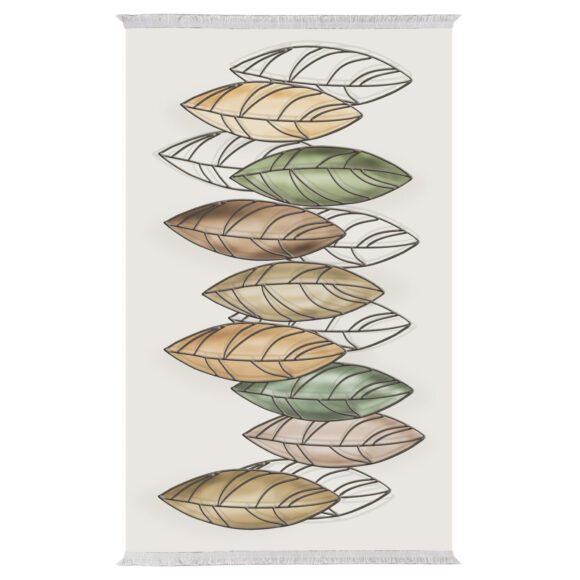 ΗΜ7677.36- χαλί σαλονιού—— Σας παρουσιάζουμε την νέα προσθήκη στην γκάμα των προϊόντων μας. Αυτό το χαλί απεικονίζει φύλλα δέντρου σε διάφορα χρώματα σε ένα ΕΚΡΟΥ φόντο.