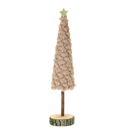 Beauty Home Έλατο με γούνα ταμπά σε ξύλινη βάση και αστέρι με χρυσό γκλίτερ Ø7 x 33