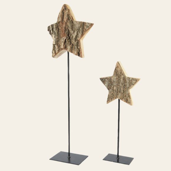 Το Σετ Ξύλινα Αστέρια με Βάση, που περιλαμβάνει 2 τεμάχια, ύψους 35 cm και 55 cm, είναι μια εντυπωσιακή διακοσμητική επιλογή για να προσθέσετε μια εορταστική αίσθηση στο χώρο σας. Κατασκευασμένα από ποιοτικό ξύλο, αυτά τα αστέρια διαθέτουν μια φυσική υφή και απλή κομψότητα, καθιστώντας τα ιδανικά για κάθε στυλ διακόσμησης.