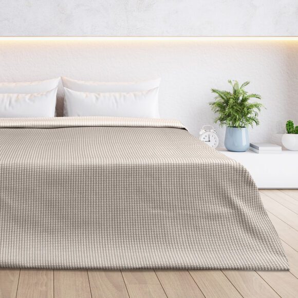 Ιδανική κουβέρτα διπλής όψεως για τις δροσερές νύχτες του καλοκαιριού σε γήινες αποχρώσεις.Εξαιρετικά απαλή και ανθεκτική στη χρήση. Διατίθεται σε διάσταση 260×270 με σύνθεση 80% COT – 20% POL