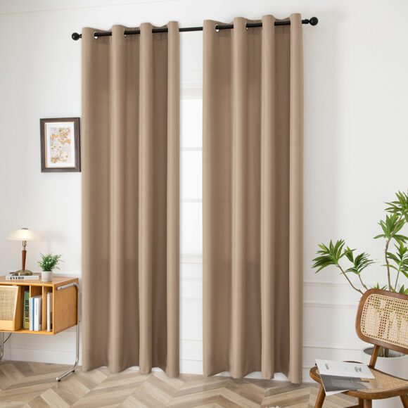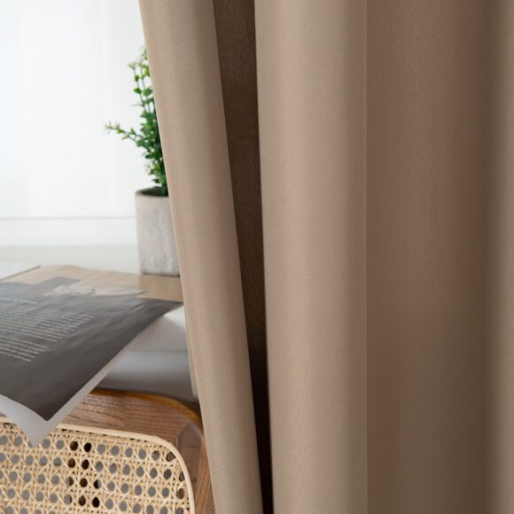 Κουρτίνα εσωτερικού χώρου, μονόχρωμη σε μπεζ απόχρωση. Κατασκευασμένη από 100% polyester και ενσωματωμένα τρουκς για εύκολη τοποθέτηση. Το ύφασμα είναι μεσαίας σκίασης. Διακοσμήστε την σε όποιο χώρο του σπιτιού σας επιθυμείτε και δημιουργήστε ένα ξεχωριστό στυλ.