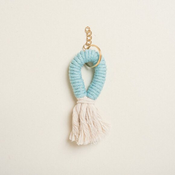 Χειροποίητο μακραμέ μπρελόκ 11 x 4 cm, ιδανικό για μπομπονιέρα. Με όμορφο σχέδιο και φυσική αίσθηση, προσφέρει μια ξεχωριστή και πρακτική αναμνηστική λεπτομέρεια για γάμους, βαφτίσεις και άλλες εκδηλώσεις.