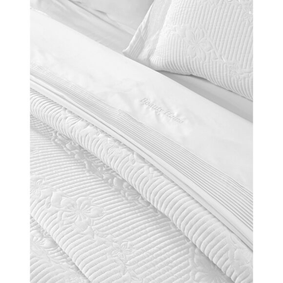 H Beauty Home θέλει να βρίσκεται δίπλα σας σε κάθε στιγμή της ζωής σας. Σας παρουσιάζουμε την νέα συλλογή μας σε νυφικά σετ ώστε να δημιουργήσετε ένα εντυπωσιακό νυφικό κρεβάτι που θα αποτελέσει το κέντρο της προσοχής στο υπνοδωμάτιο σας την ομορφότερη μέρα της ζωής σας. Το σετ νυφικού κρεβατιού προσφέρει όχι μόνο λειτουργικότητα αλλά αποτελεί την ιδανική επιλογή για να δώσετε μια νότα πολυτέλειας,κομψότητας και ρομαντισμού στον χώρο σας. Το νυφικό σετ σε βαλίτσα περιλαμβάνει : 1 βαλίτσα λευκή που περιέχει: 1 τεμάχιο κουβερλί σε διάσταση 230×250 το οποίο θα αγκαλιάσει το κρεβάτι σας με μια αίσθηση άνεσης και ζεστασιάς , το σετ συμπληρώνει 1 τεμάχιο πανωσέντονο σε διάσταση 240×260, 1 τεμάχιο κατωσέντονο σε διάσταση 240×260 και 4 τεμάχια μαξιλαροθήκες σε διάσταση 50×70 είναι σχεδιασμένα για να εφαρμόζουν τέλεια προσφέρoντας μια αίσθηση απαλότητας και άνεσης κατά τη διάρκεια του ύπνου. Είναι κατασκευασμένο από microfiber κεντημένο επιλεγμένο με προσοχή για την υψηλή ποιότητα και την αντοχή του, ενώ η υφή του είναι μαλακή και απαλή στην αφή. Είτε πρόκειται για μια κλασική επιλογή είτε για κάτι πιο μοντέρνο και δυναμικό, αυτό το σετ θα σας χαρίσει μια αίσθηση πολυτέλειας και άνεσης κάθε φορά που θα το χρησιμοποιείτε. Προσθέστε οποιαδήποτε τελευταία διακοσμητικά στοιχεία, όπως πετσέτες ή ρόμπες λουτρού, που θα συμπληρώσουν το στυλ και την αισθητική του νυφικού κρεβατιού σας