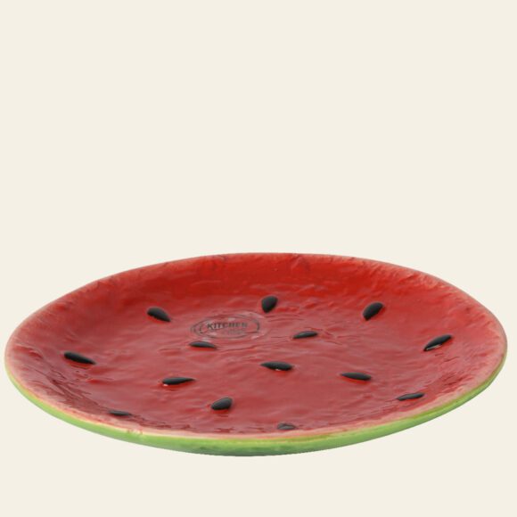 Χαρούμενο και καλοκαιρινό πιάτο με σχέδιο καρπουζιού, ιδανικό για σερβίρισμα φρούτων, γλυκών ή σνακ. Προσθέτει χρώμα και ζωντάνια στο τραπέζι σας.