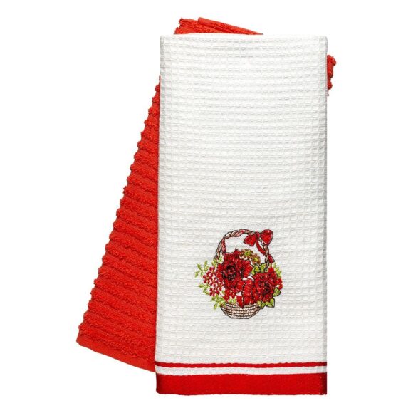 Beauty Home Ποτηρόπανα σετ 2τμχ Flowers Art 8822 40×60 Κόκκινο