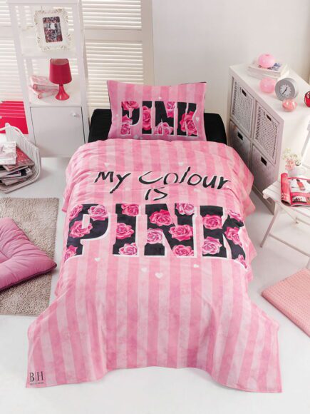 Κουβερλί μονό Pink Το σετ περιλαμβάνει 1τεμάχιο κουβερλί σε διάσταση 160×240 και 1 τεμάχιο μαξιλαροθήκη σε διάσταση 50×70 .Η ποιότητά του είναι cotton 100%