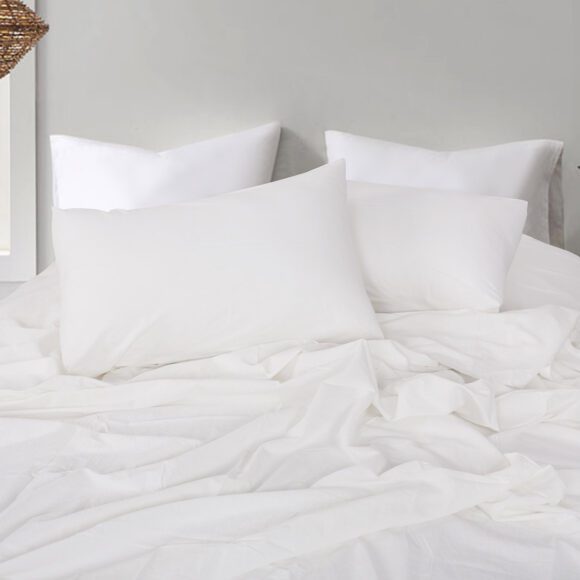 Σετ σεντόνια υπέρδιπλα. Το σετ περιλαμβάνει 1 τεμάχιο πανωσέντονο σε διάσταση 240×280 , 1 τεμάχιο κατωσέντονο σε διάσταση 240×280 και 2 τεμάχια μαξιλαροθήκες σε διάσταση 50×70. Η ποιότητά του είναι 70% Βαμβάκι και 30% Λινό.