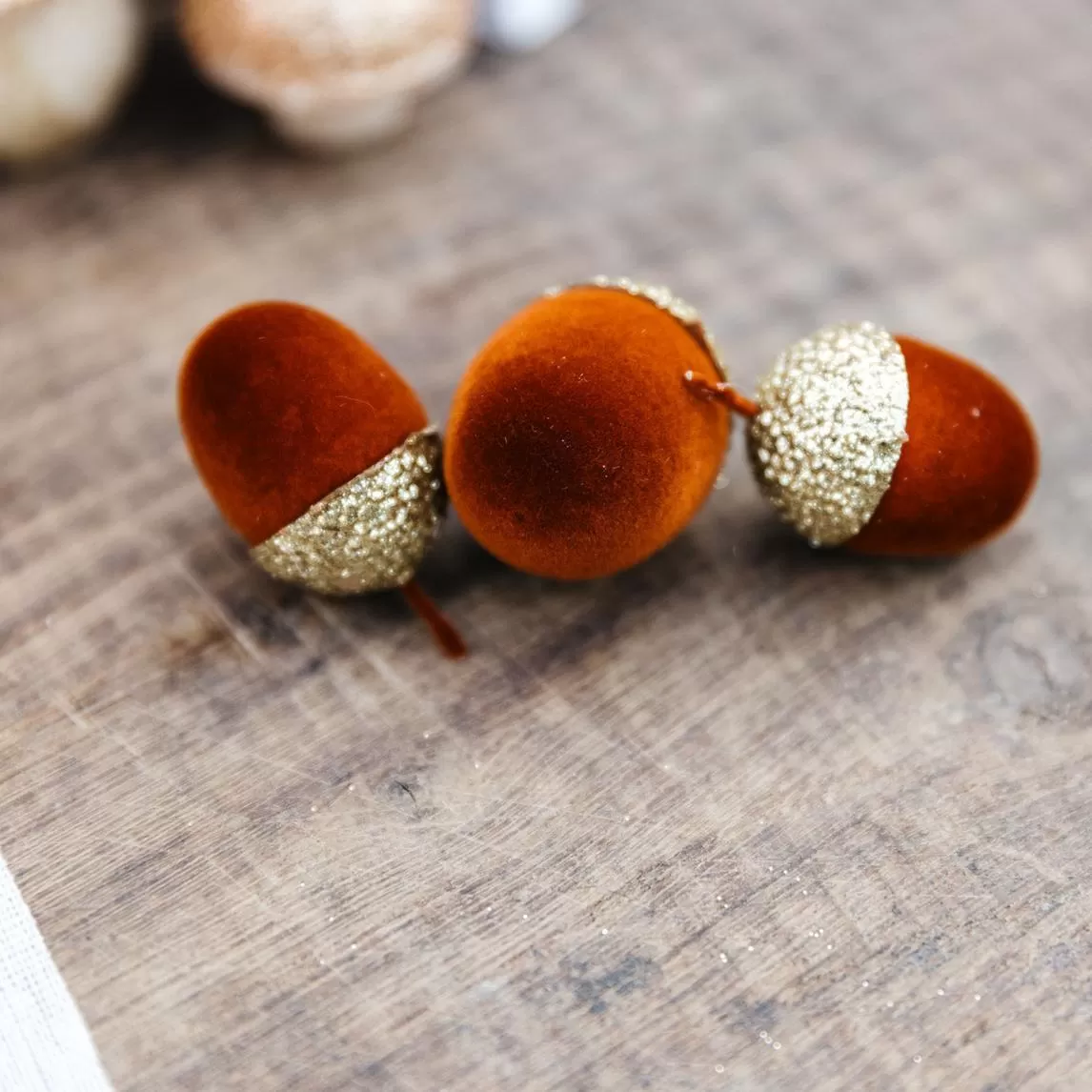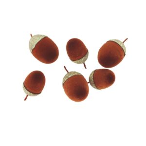 Beauty Home 6 βελανίδια βελούδινα κεχριμπαρί με χρυσό γκλίτερ 3 – 4.5 cm
