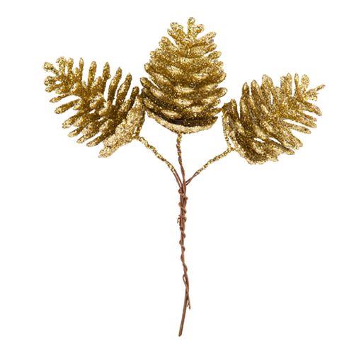 11. Beauty Home 3 Κουκουνάρια με Χρυσό Γκλίτερ σε Κλαδάκι 15 cm