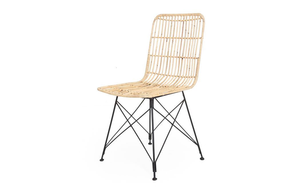 Καρέκλα τραπεζαρίας KM Natural (45x55x85cm) από kubu rattan σε φυσικο χρώμα, με μεταλλικά πόδια βαμμένα μαύρα. Χρειάζεται συναρμολόγηση. Συσκευασία 2 δέματα (1 δέμα τα πόδια, 1 δέμα κάθισμα).