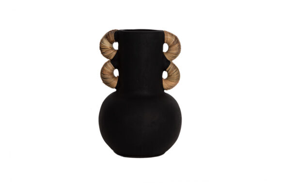 Διακοσμητικό Βάζο Kore Black (30x43cm) με χερούλια από πηλό σε μαύρο χρώμα. Συσκευασία 1 δέμα ανά τεμάχιο.
